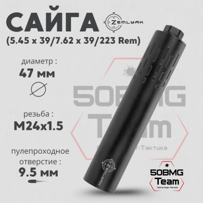 ДТК ZEMLYAK Сайга калибр 5,45/7,62/223Rem (230мм, резьба М24х1,5, п/п 9,5мм, Ø 47мм)