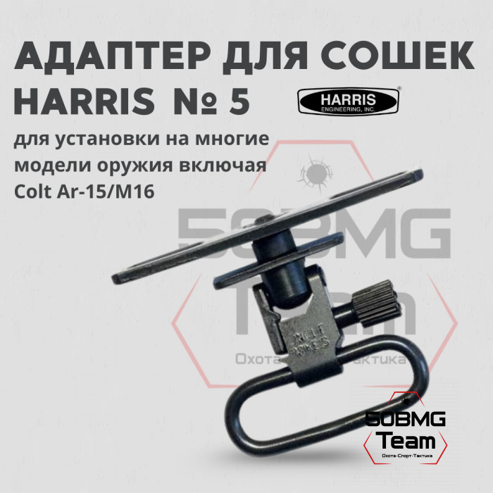 Адаптер под сошки Harris и любые иные, устанавливаемые на стандартный саморез антабки. Служит для установки сошек на цевье винтовок на базе AR-15/M-16.
