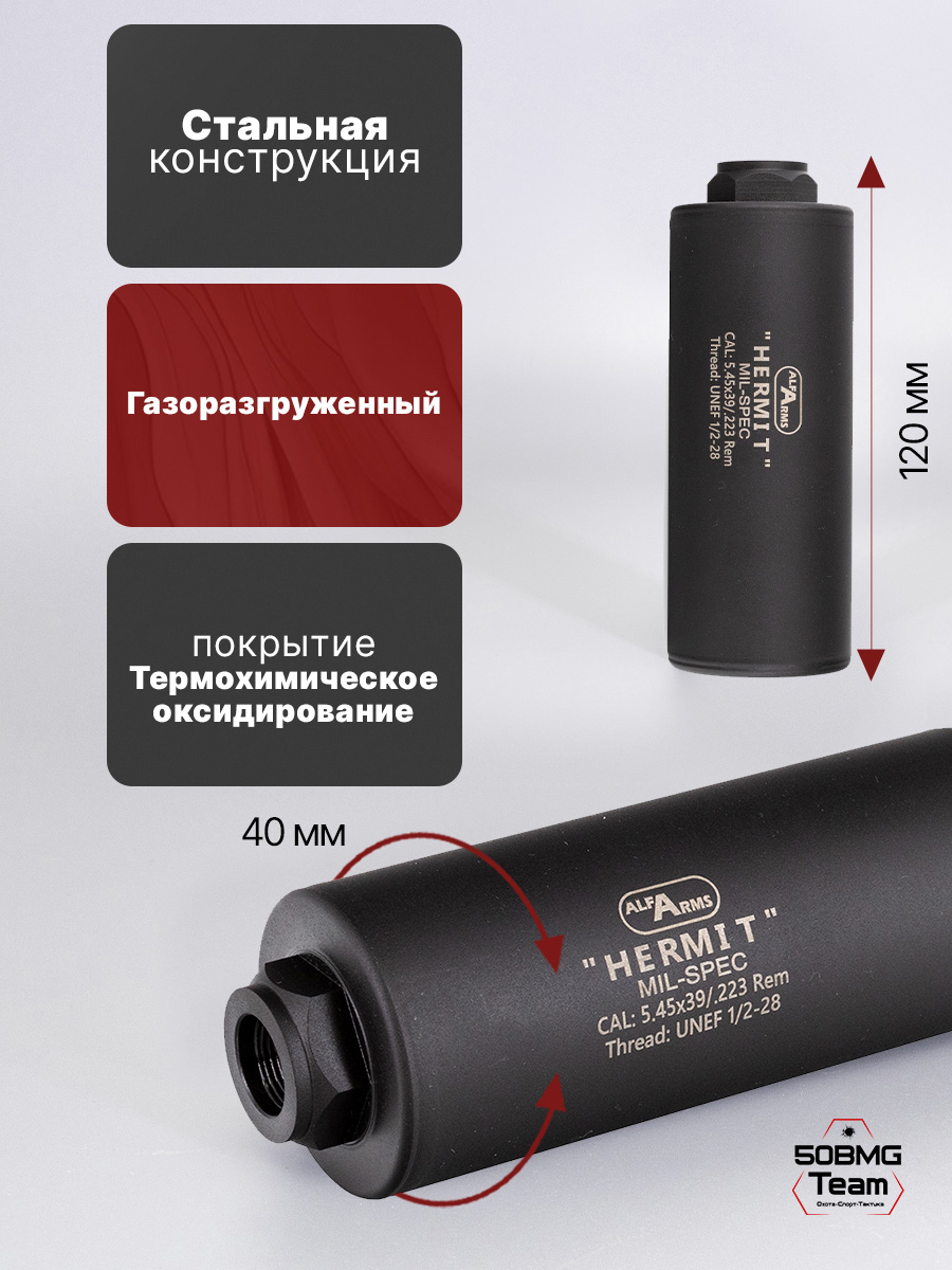 Alfa Arms снижает обратное давление, что позволяет вести интенсивную стрельбу без ограничений. Эффективно уменьшает уровень звукового давления при выстреле: в зависимости от используемых боеприпасов, громкость может снижаться на 35 ДБ, что позволяет стрелять без наушников. Это значительно повышает комфорт как для стрелка, так и для окружающих.