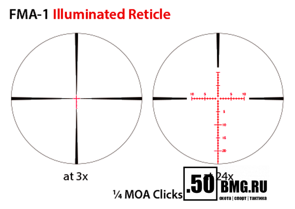 March 3-24x42 FFP обеспечивает четкое изображение на любой кратности благодаря низкодисперсионному ED стеклу, максимально эффективно устраняющему хроматические аберрации.