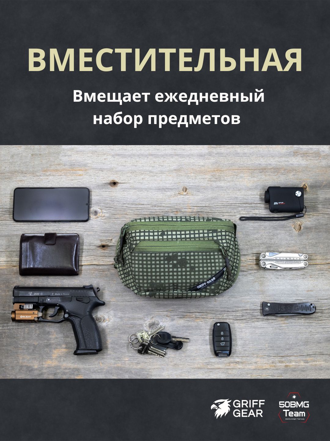 Сумка «Гефест» — универсальная модель для повседневного ношения EDC и скрытого размещения оружия. Конструкция сделана так, чтобы сумка не провисала при загрузке и комфортно располагалась над нижней частью живота, не мешая движению бедра.