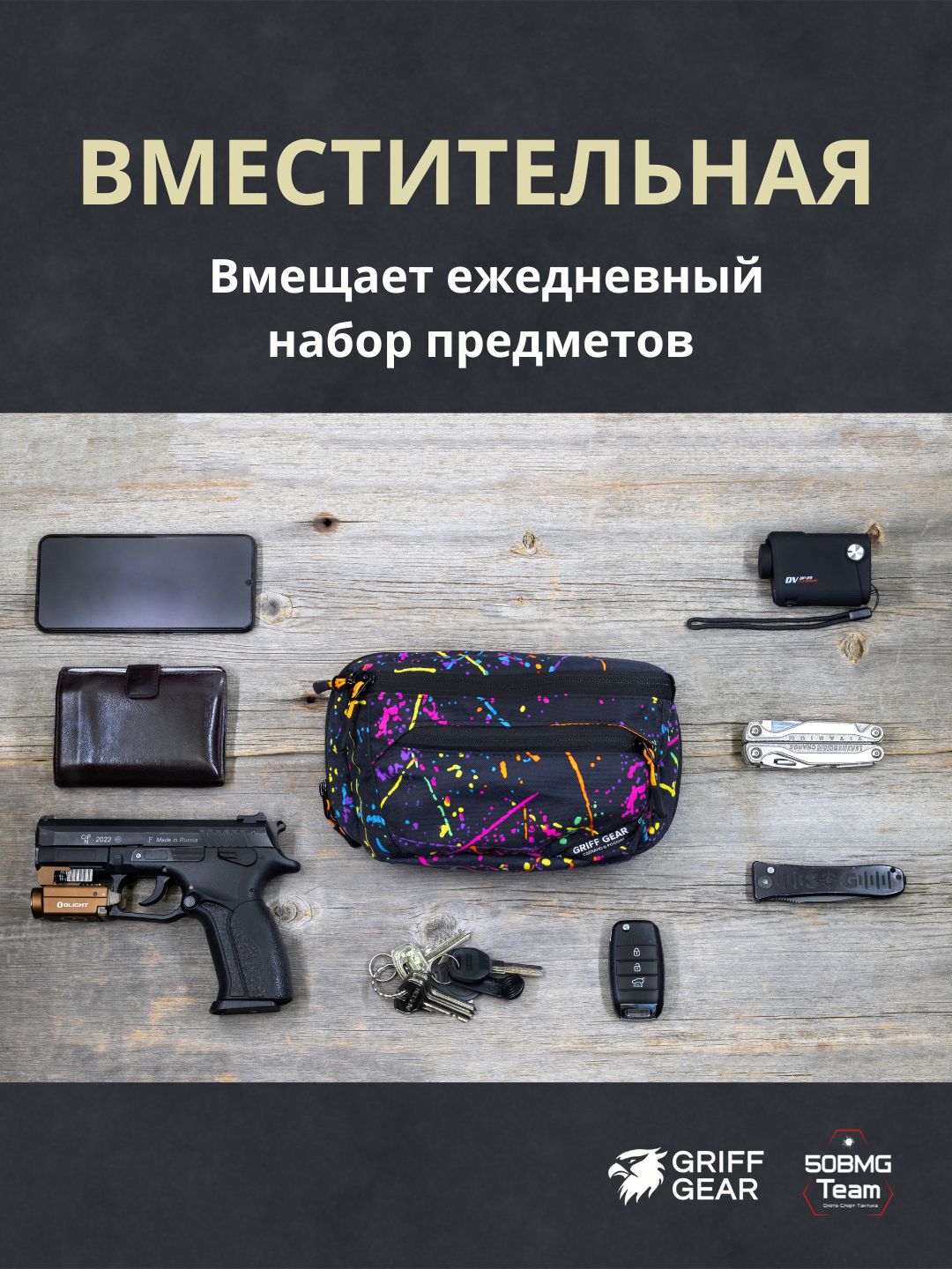 Сумка «Гефест» — универсальная модель для повседневного ношения EDC и скрытого размещения оружия. Конструкция сделана так, чтобы сумка не провисала при загрузке и комфортно располагалась над нижней частью живота, не мешая движению бедра.