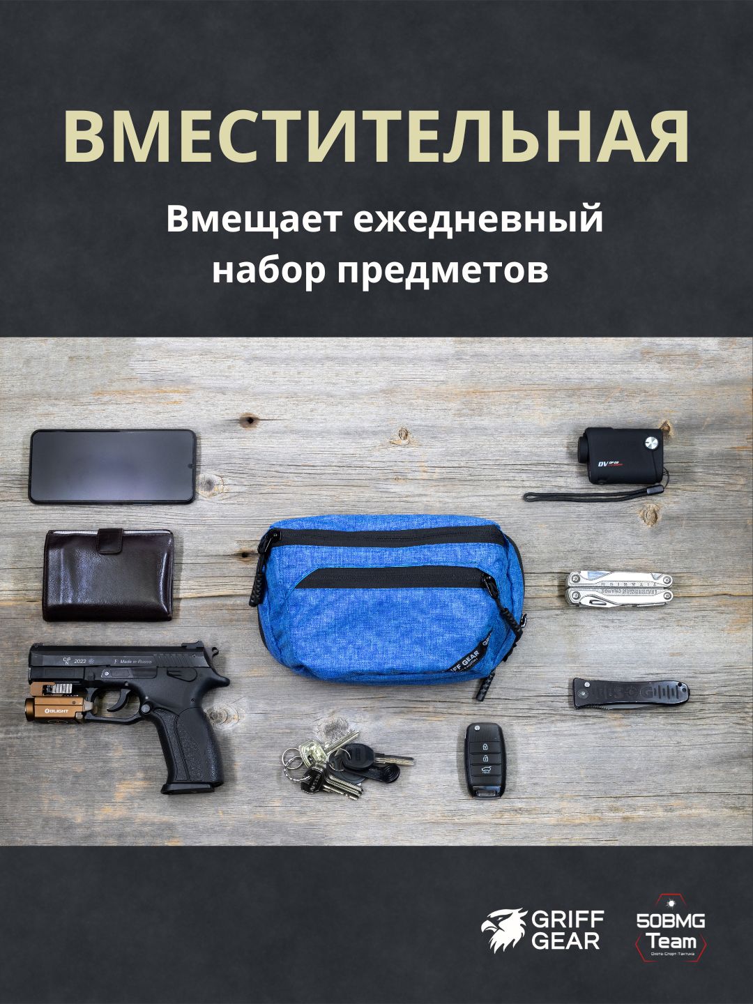 Сумка «Гефест» — универсальная модель для повседневного ношения EDC и скрытого размещения оружия. Конструкция сделана так, чтобы сумка не провисала при загрузке и комфортно располагалась над нижней частью живота, не мешая движению бедра.