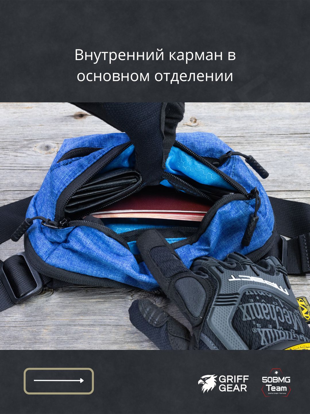 - 2 велкро‑панели внутри для крепления кабуры и органайзеров