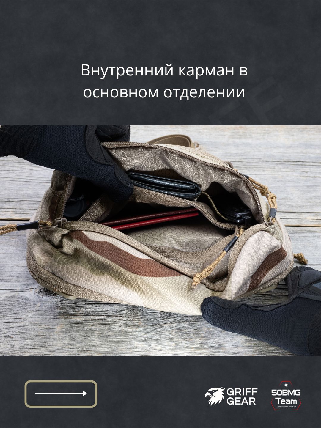 - 2 велкро‑панели внутри для крепления кабуры и органайзеров