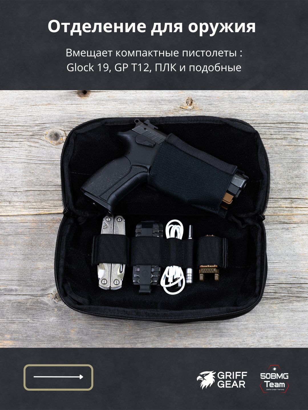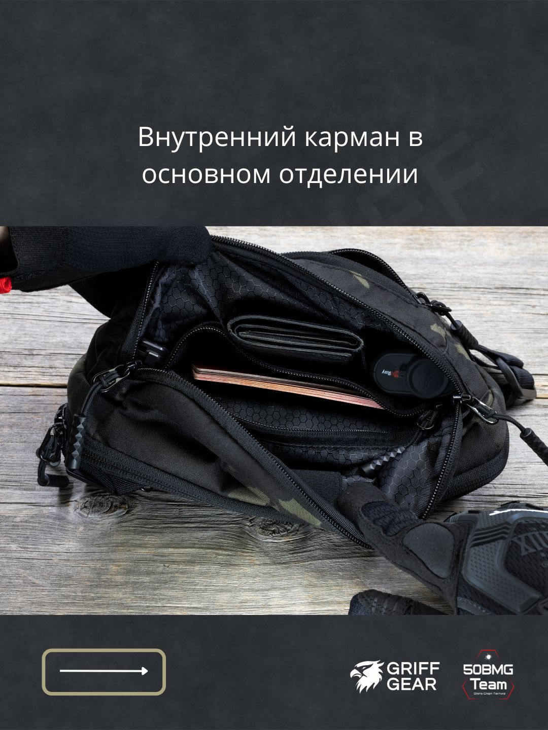 - 2 велкро‑панели внутри для крепления кабуры и органайзеров