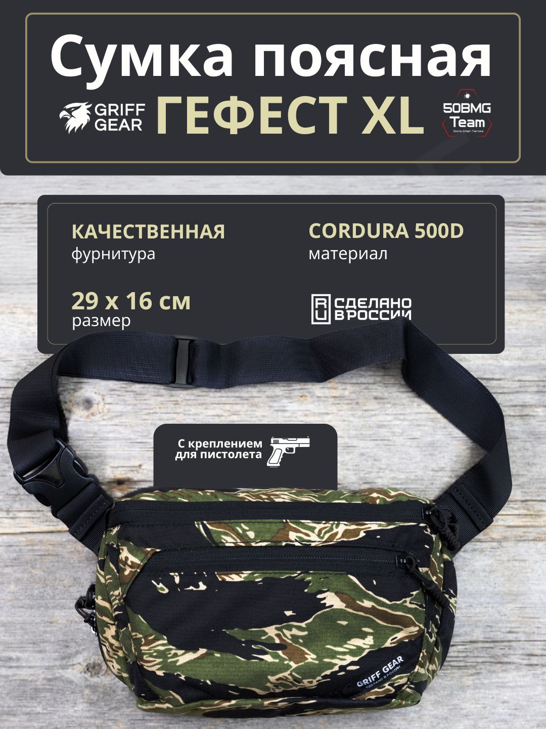 Сумка поясная Griff Gear Гефест XL (Tiger Stripe Black)