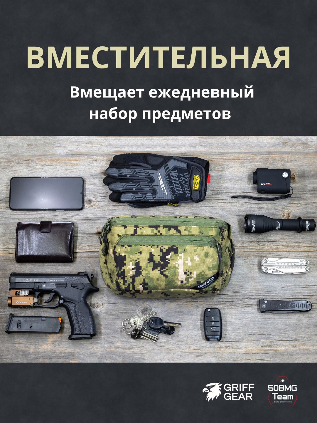 Сумка «Гефест XL» — универсальная модель для повседневного ношения EDC и скрытого размещения оружия.