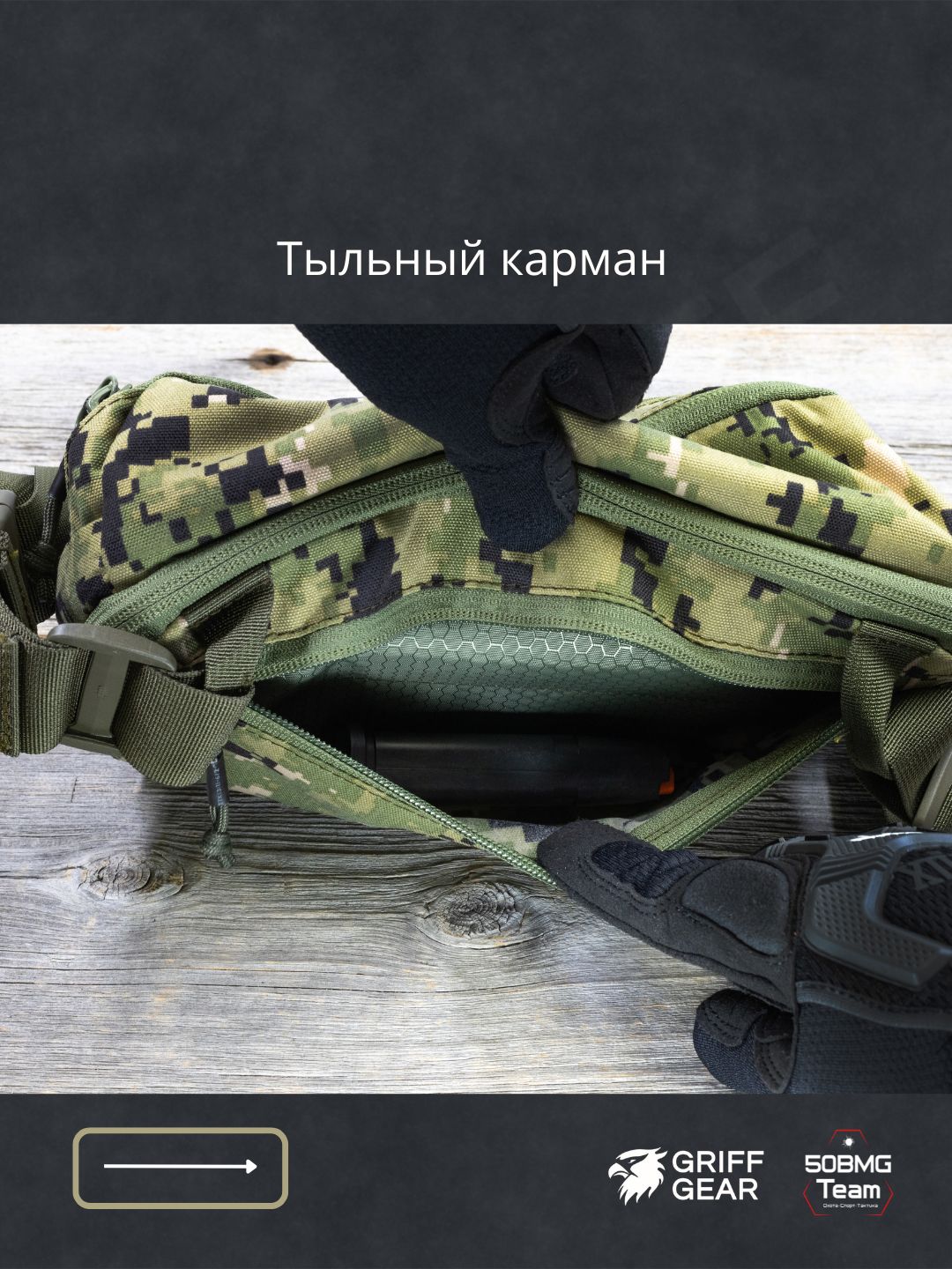 - 2 велкро‑панели внутри для крепления кабуры и органайзеров