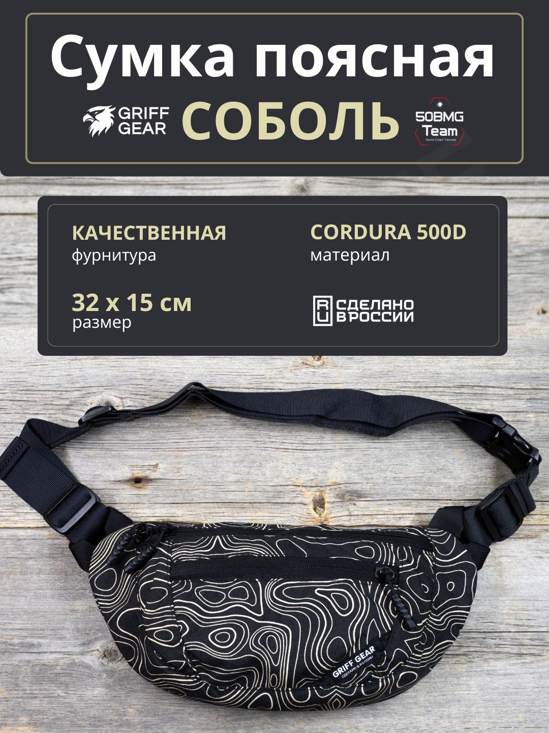 Сумка поясная Griff Gear Соболь (Топография черная)