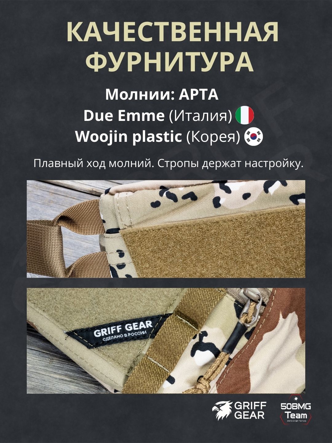 Оснащена велкро‑панелью для крепления под бронежилет.