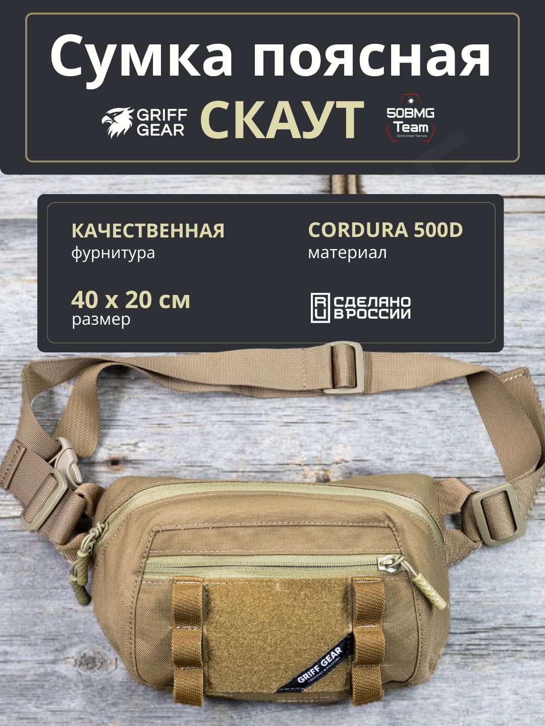 Сумка «Скаут» — напашная/поясная модель для тех, кому важно держать нужные вещи под рукой и при этом не терять свободу движений. Конструкция сделана так, чтобы сумка не провисала при загрузке и комфортно располагалась над нижней частью живота, не мешая движению бедра.